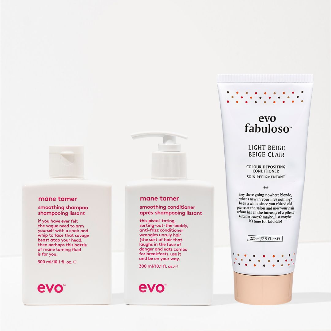 if you're ready to upgrade your colour maintenance routine, grab this smoothing shampoo, conditioner and light beige colour depositing conditioner trio to cleanse, hydrate and strengthen, while refreshing and reviving colour-treated hair.