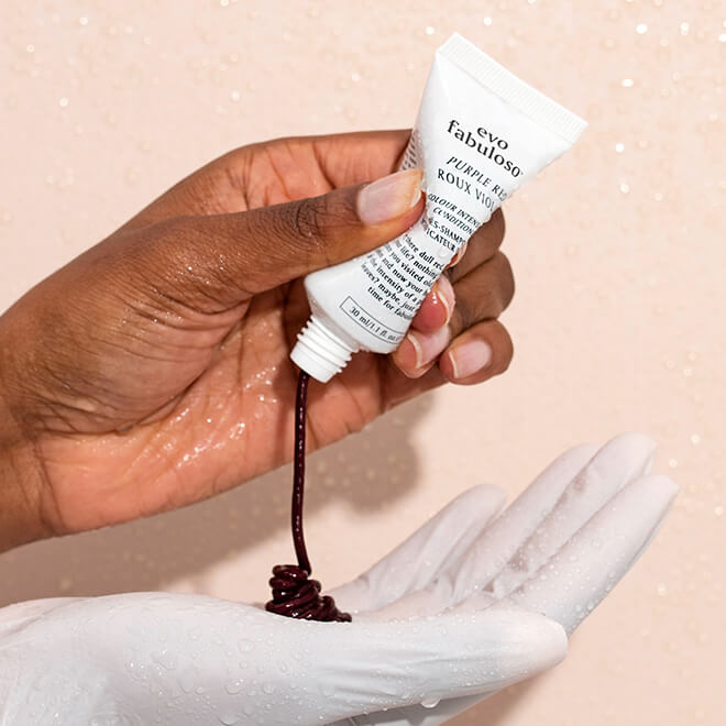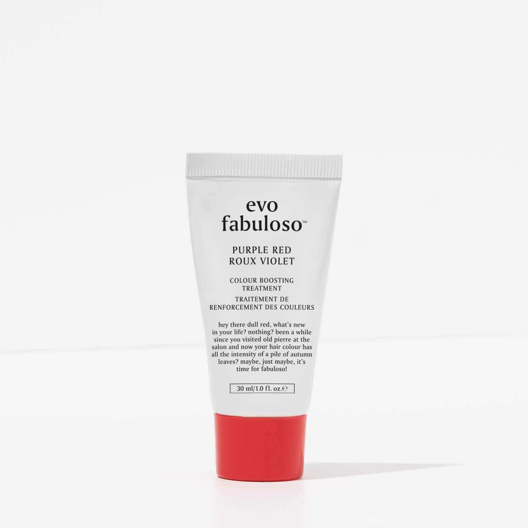 evo fabuloso colour boosting treatments instantly refresh, tone, revive and add shine to colour treated hair. this at-home, 3 minute conditioning treatment uses cationic hair dye to help boost colour and keep hair vibrant for longer. this hair treatment features reparative and anti-static properties to help strengthen hair and reduce frizz. purple red is best suited to dull, dry, colour-treated dark blonde to medium brown hair with a red tone. take evo fabuloso straight from shelf to shower to keep colour-treated hair toned, vibrant and healthy in-between salon visits.