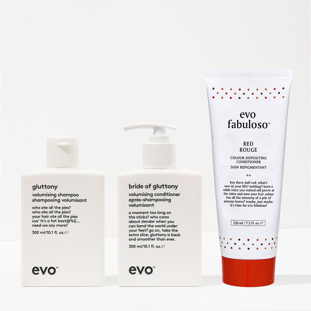 if you're ready to upgrade your color maintenance routine, grab this lightweight volumising shampoo, conditioner and red color depositing conditioner trio to cleanse, build body and strengthen, while refreshing and reviving color-treated hair.