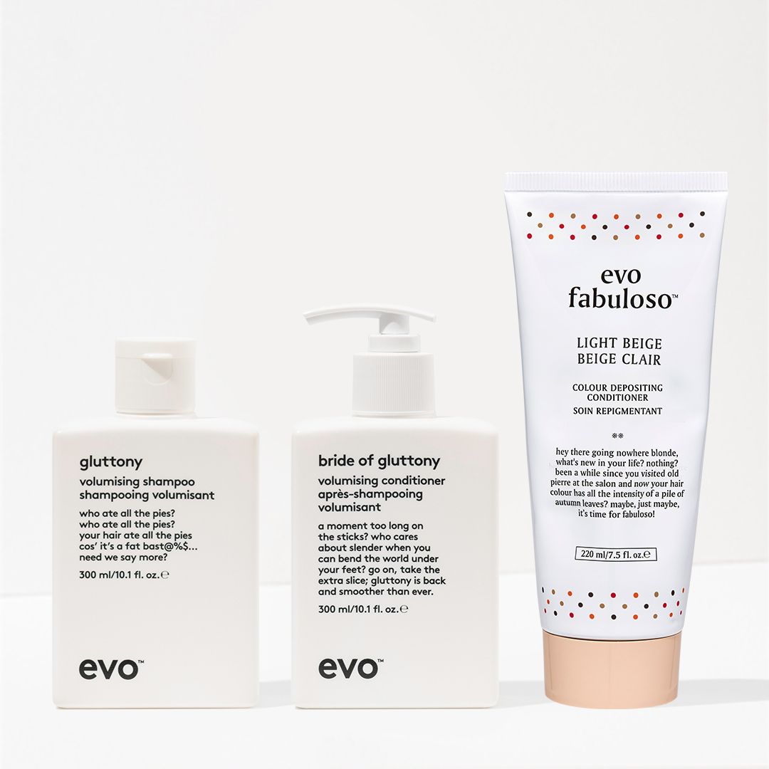 if you're ready to upgrade your color maintenance routine, grab this volumizing shampoo, conditioner and light beige color depositing conditioner trio to cleanse, build body and strengthen, while refreshing and reviving color-treated hair.