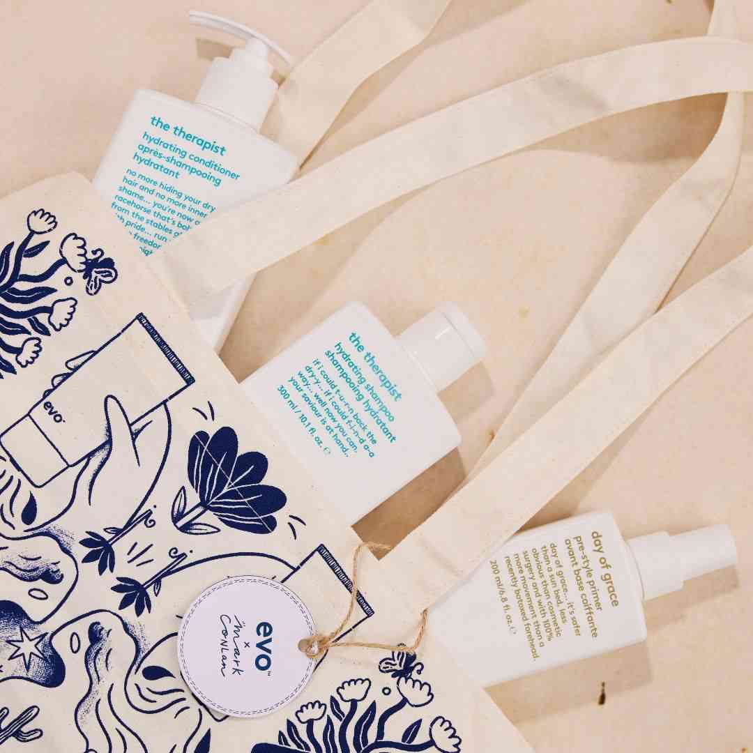 no diggity… you should bag this up. in here is everything one needs to make heads and shoulders turn. the good givin' gift set in hydrate includes a free day of grace pre-style primer and a limited edition mark conlan x evo tote bag.