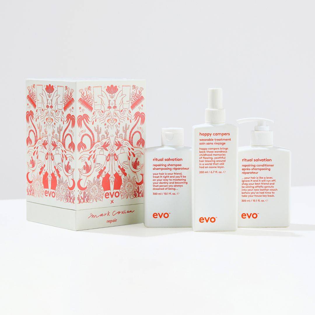 no diggity… you should bag this up. in here is everything one needs to make heads and shoulders turn. the good givin' gift set in repair includes a free happy campers wearable treatment and a limited edition tote bag.