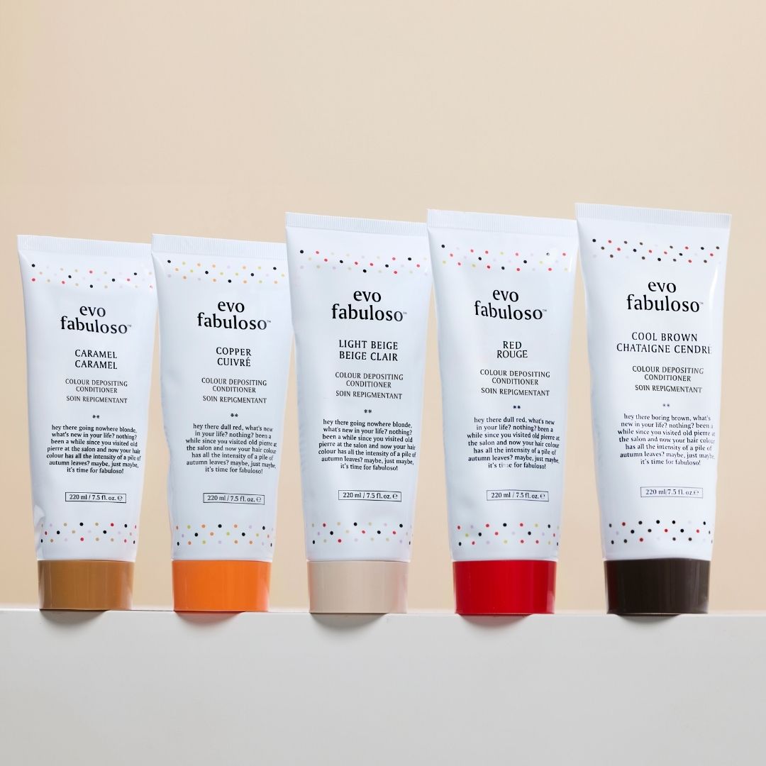 have you noticed a new look to evo fabuloso copper? the changes are simple but make so much sense - like all the best things in life. rather than being called a colour boosting treatment, it’s now called a colour depositing conditioner. evo fabuloso colour depositing conditioners instantly refresh, tone, revive and add shine to color treated hair. this at-home, 3 minute conditioning treatment uses cationic hair dye to help boost color and keep hair vibrant for longer. this hair treatment features reparative and anti-static properties to help strengthen hair and reduce frizz. copper is best suited to dull, dry, color-treated blonde to medium brown hair with copper tone. take evo fabuloso straight from shelf to shower to keep color-treated hair toned, vibrant and healthy in-between salon visits.
